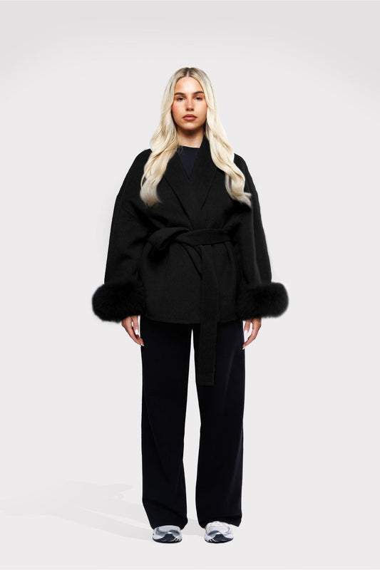 Fur Jacket Satin - Black