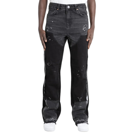 "Black Patch Flared Denim"